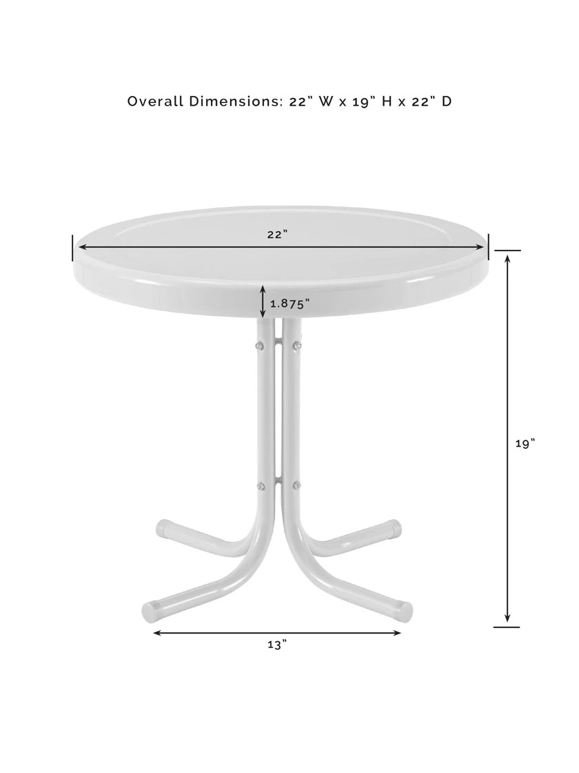 Relax and rock away with the retro-inspired Griffith 3pc Rocking Chair Set. Made from sturdy powder-coated steel, the rocking chair and side table are constructed with durability and style in mind. The low slanted seat of the rocking chair allows you to recline on smooth metal rockers while the curved armrests maximize comfort. The round side table complements the rocking chair with the perfect spot to place your drink. Available in a variety of vibrant colors, this set will create a lively spot for outdoor relaxation.