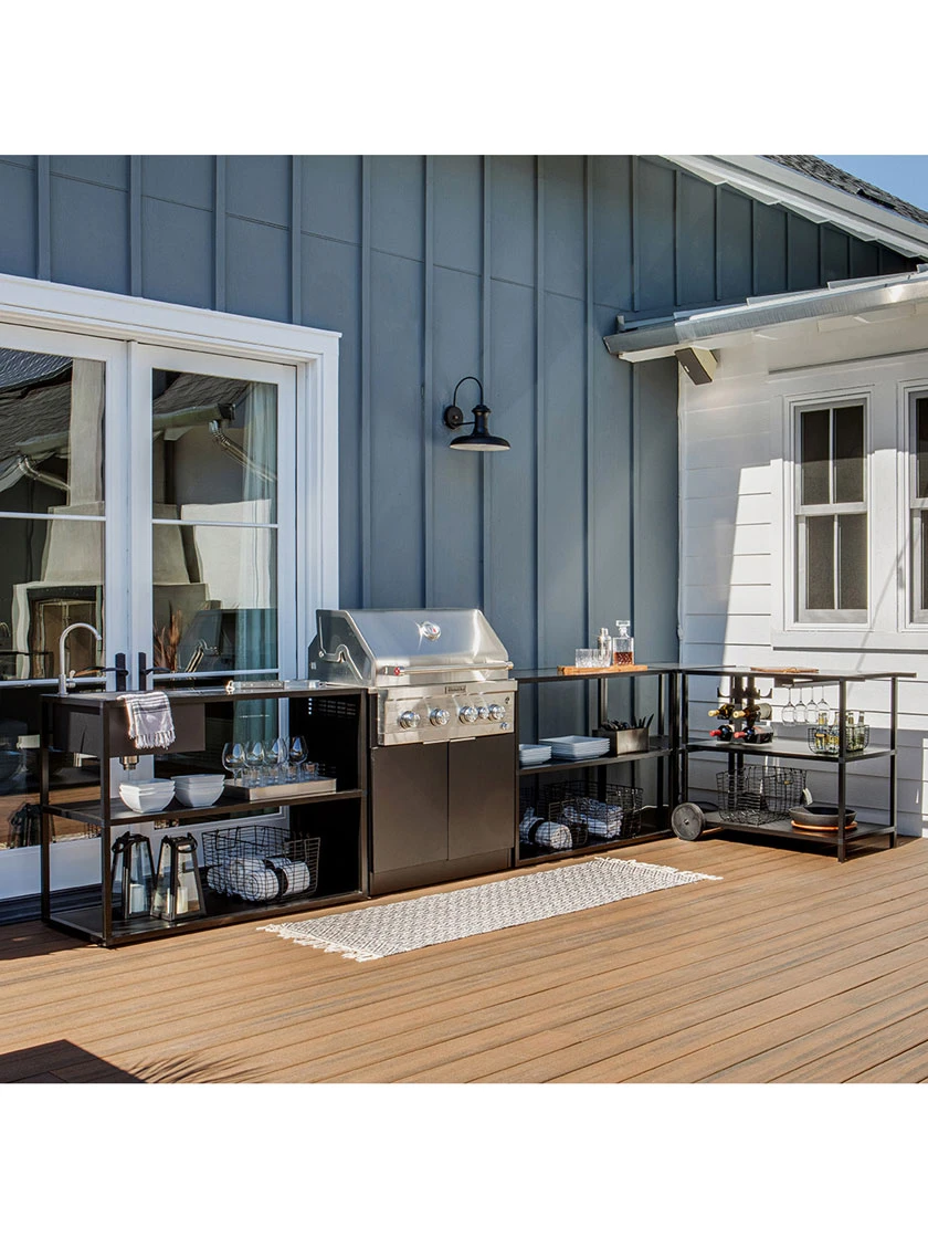 Maximize your time in the outdoors! With Veradek Outdoor Kitchen modules, you can design the perfect kitchen to fit your unique outdoor space. Made from a sturdy, corrosion resistant aluminum frame and protected by a strong, scratch-powdercoat, the Veradek Outdoor Bar Cart is built for the outdoors. The Bar Cart comes equipped with a durable, food-safe brushed stainless steel countertop that is easy to clean and maintain. Lower shelving panels are made from corrosion-resistant, powder-coated aluminum and come equipped with durable anti-scratch mats. Best of all, all Veradek Kitchen pieces are modular, allowing you to mix and match modules to create a kitchen to perfectly fit your unique patio or deck area. Get your outdoor party started with a Veradek Outdoor Bar Cart!